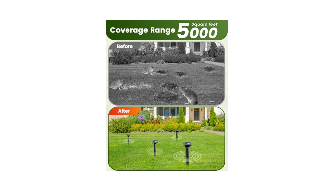 Multi-Pest Sonic Defense | Safe for Pets & Gardens: Eliminates 12+ pests: snakes, skunks, chipmunks, voles, lizards, raccoons, and burrowing rodents. Dynamic frequency modulation prevents adaptation—90%+ pest evacuation in 7 days. Safer than \"snake away sprays\" or \"vole repellent\" chemicals—pet-friendly and organic gardening-approved.