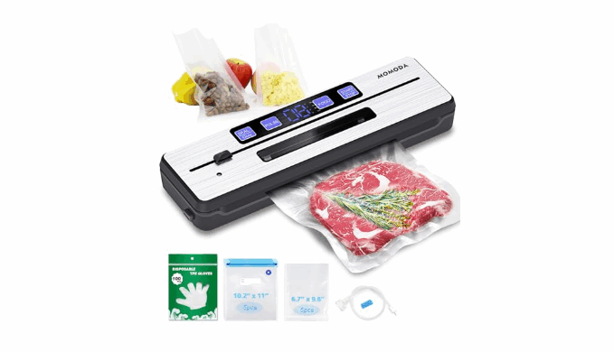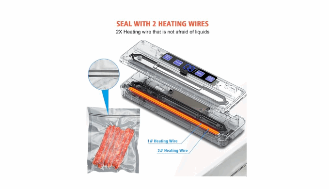 ✅ 80kPa Suction with Dual Heating Wires for 8X Freshness:Delivers 80kPa powerful suction and dual heating wires to lock in flavor up to 8X longer, protecting meat, seafood, and veggies from freezer burn while saving fridge space.