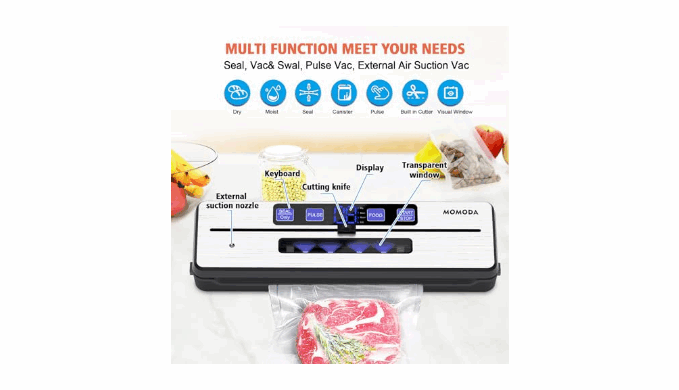 ✅ Versatile Moist & Dry Modes with Built-in Cutter:Switches effortlessly between moist and dry settings for all food types, plus a built-in cutter to customize bag sizes—ideal for sous vide or bulk meal prep.