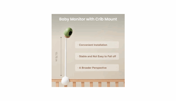 What’s Included:Wifi Baby monitor with camera and audio; Companion app with no subscription fee;Easy-to-install Flexible soft crib stand & wall mounting accessories;Professional APP provides comprehensive parenting support functions, including sleep analysis, growth records, etc.