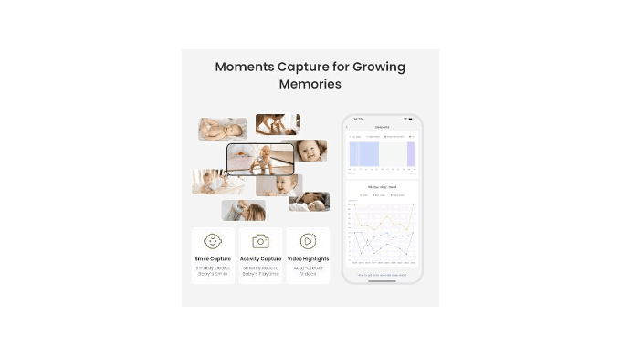 Smart Parenting Assistant: Our Wifi Baby Camera features 7 AI functions, including Covered-face alert, Sleep monitoring, Cry detection, Music to soothe crying, Virtual fence, Auto tracking, and Moments capture. It also has Monai\'s proprietary AI question-and-answer assistant with a wealth of parenting knowledge to solve your parenting problems.