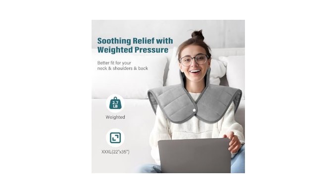 Weighted Design on Neck and Shoulders: Our LIPHOME 2.7lb Weighted Heating Pad for neck and shoulders filled with stone seeds, not only ensures that this Heating Pad is sufficient to keep it in place and doesn\'t fall off when using, but also fits snugly so that the heat effect will be multiplied and kept longer for pain relief. Our Weighted Heating Pad for Cramps with wearable heating technology is specially designed to relieve muscle soreness and stiffness, and soothe menstrual or period cramps