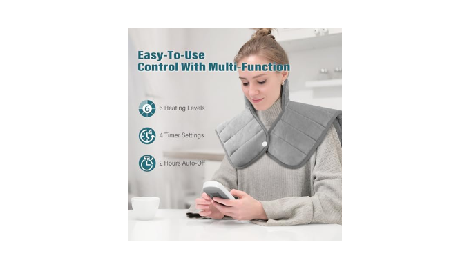 XXXL Size Heating Pad w/Smart Controller: Our Electric Heating Pad for Back Pain Relief, measuring a generous 22\"x35\", provides extensive coverage with two straps to fasten. The user-friendly smart controller allows for effortless operation, featuring a range of 1-6 temperature levels(104°F-140°F) and 1-4 timer settings (30/60/90/120min), ensuring that you can personalize your experience while safeguarding against the risk of overheating and potential burns. Enjoy a cozy and soothing warmth