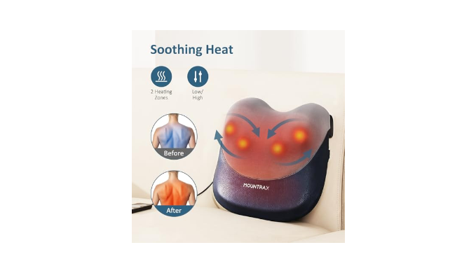 Shiatsu Neck and Back Massager: Mountrax Back Massager is designed to relieve tension and pain in the back, neck and shoulders. It features 4 bi-directional motion deep kneading massage nodes that mimic professional Shiatsu massage, providing a deep massage combined with a heating function that quickly relaxes muscle tension and effectively relieves fatigue from work