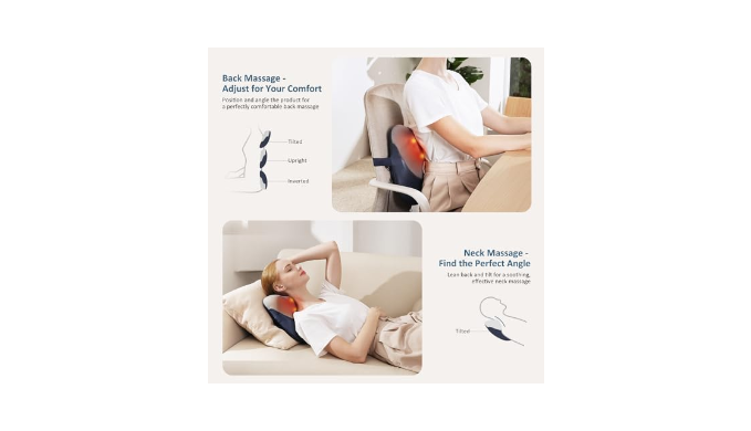 Soothing Heat and Customizable Functions: Unique dual-zone heating function allows you to experience great neck and back heating, effectively soothing muscle fatigue and promoting circulation. You can also choose 2 heating levels and 2 massage intensities according to your needs, and even the direction of massage. There is also an optional 15 or 25 minute automatic timer to prevent overuse and overheating