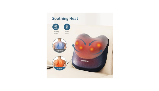 3D Shiatsu Massager for Back and Neck: Mountrax Back Massager features four deep-kneading 3D massage nodes with bi-directional movement, mimicking the inward and outward movements of professional Shiatsu massage. Targets knots and tension for deep tissue relaxation and pain relief. Two adjustable intensity settings allow you to customize your massage experience to your preference and comfort