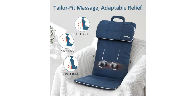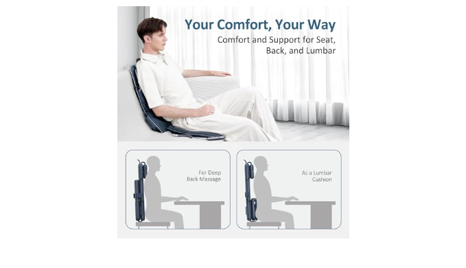 Versatile Cushion for Customizable Relaxation: Mountrax back massager features a multifunctional cushion and pillow that cater to your comfort needs. Use the cushion as a seat, lumbar support, or backrest, and the pillow as a neck or headrest. Easily adjust for maximum relaxation, whether sitting or reclining