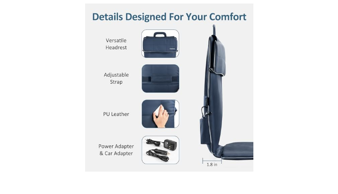 Enhanced Usability Details: This back massager for chair features an adjustable strap to various chair types. The PU leather is both easy to clean and elegantly stylish. The coiled remote control cord prevents tangling, and dual adapters for home and car use