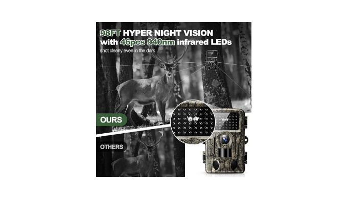 【98FT Hyper Night Vision】Mrscret Trail Camera Equipped With 46pcs 940nm Infrared Leds Range 98FT. With 3 Passive Infrared Sensors Produces Detailed Black And White Night Vision Images And Captures The Moments Of Wildlife.The 4K Wifi Trail Camera Will Be Triggered Instantly In 0.1s Without Delay So That You Will Never Miss A Shot