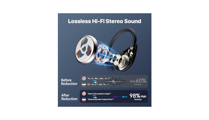 【Hi-Fi Sound Quality & 3-in-1 Function】This language translation earbuds combines translation, music playback and call functions in one headset, which enhances the efficiency and overall experience of work and communication. Equipped with 14.2mm high-power speaker drivers, it delivers superior Hi-Fi sound, letting you immerse in audio whether indoors, at work, or during sports.