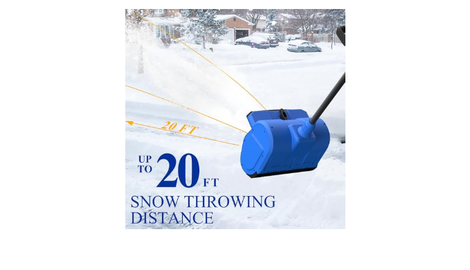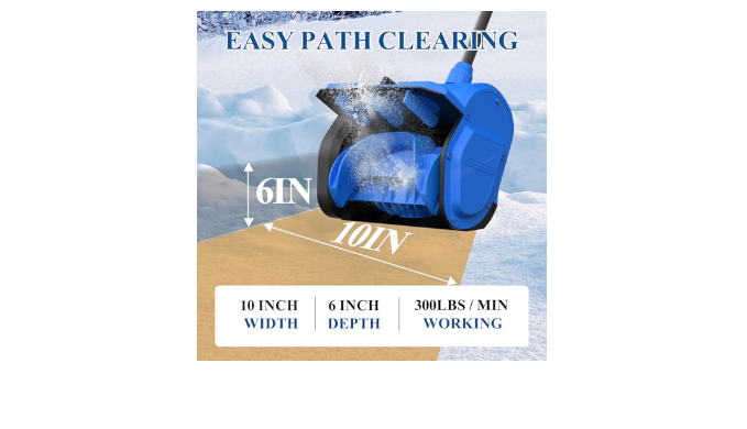 EFFECTIVE AND EFFORTLESS SNOW REMOVAL - The electric snow shovel is strong enough which can easy shovel up to over 300 lbs/min of snow; the cordless snow shovel can clears a 10 in wide x 6 in deep with a maximum shoveling distance of 20FT