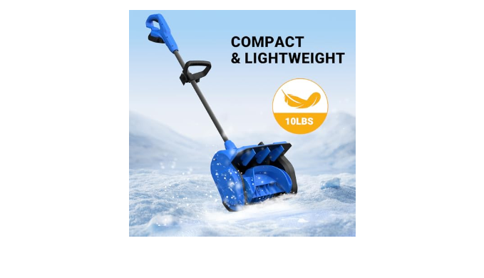 LIGHTWEIGHT AND COMPACT - The snow thrower shovel weights 10lbs, much lighter than other gas snow blower or corded shovel; starts easily with the push of a button. It takes up little space and can be easily stored in a warehouse.