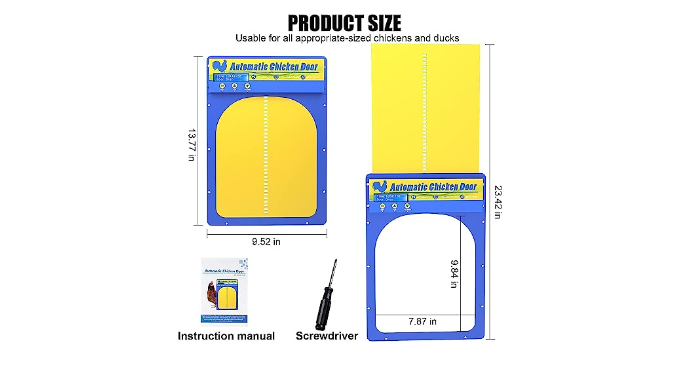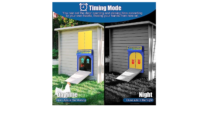 1:EASY INSTALLATION-Our chicken door comes with detailed instructions. The all-in-one design allows you to install it on the chicken coop quickly. No complicated wiring or cabling, battery powered with low battery warning Aid Busiest With LED LCD display, easy to view the time and your time settings