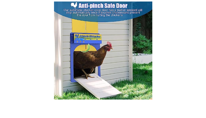 4:ANTI-PINCH SAFETY PROTECTION - Automatic chicken coop door is made of professionally painted high-quality aluminum alloy, it is strong and durable, and the carefully ground gears help prolong the life of the metal door panel.Our automatic chicken coop door has a built-in sensor, it will stop automatically once it touches chickens, and prevent the door from hurting the chickens.