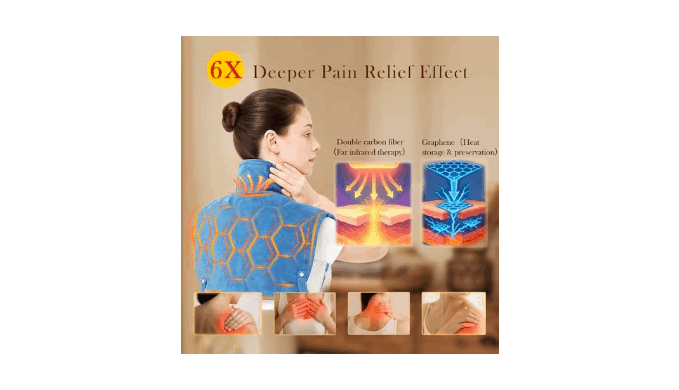 6X Deeper Pain Relief Effect: The upgraded neck shoulder heating pad is 6 times more effective than an ordinary heating pad. It uses a graphene lining and a double-layer carbon fiber heating wire. Graphene has good thermal conductivity, and the carbon fiber double-layer heating wire can release human-like infrared rays. The two are superimposed to achieve an effect of more than 6 times, and the heat energy penetrates the subcutaneous tissue to reach every deep muscle. Long-term use can relieve chronic pain caused by long-term head-down work or housework