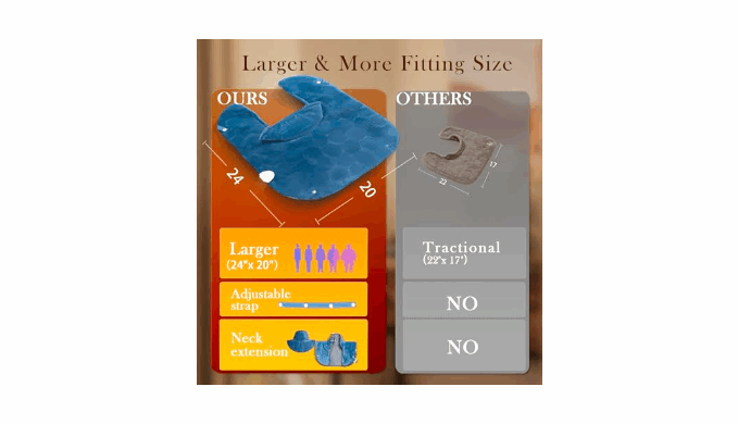 Larger and more fitting size: designed according to the structure of the human body, it fits the neck and shoulder curves, making it more comfortable to wear. 24*20 large size, 2 inches more than other products, adjustable strap design, suitable for different body shapes, no matter fat or thin. And the neck extension design allows your neck to enjoy the heat therapy. The light weight of 1.2lb is comfortable even for elderly parents