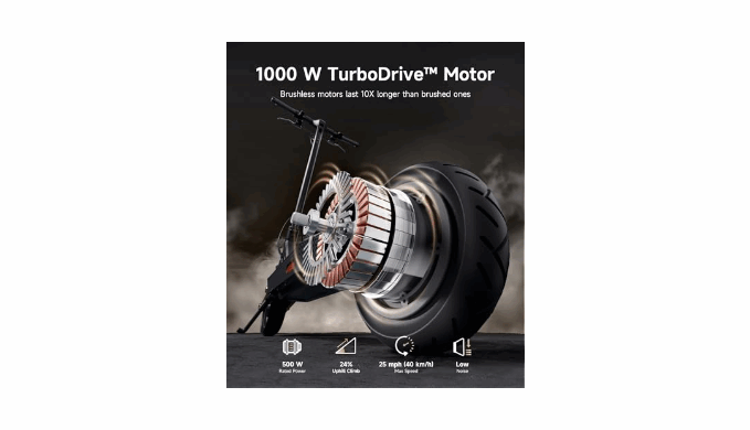 -1000W Powerful Motor: Built with a 1000W high-torque motor and 10\\\" tubeless solid tires, this motorized scooter effortlessly conquers steep inclines up to 24%, making it perfect for beating traffic, tackling hills, or exploring offroad trails.