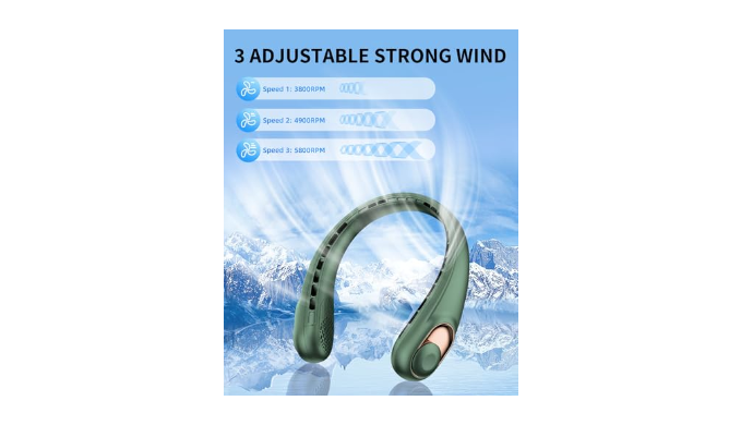 [Say goodbye to hot summer] -- Neck fan with 3 adjustable wind speed, large air outlet, 360°surrounding cooling wind for the entire face around, adopt newest turbine blades that can cool quickly in 3 seconds, a good cool friend for indoor and outdoor use such as when cooking, working, traveling, Running