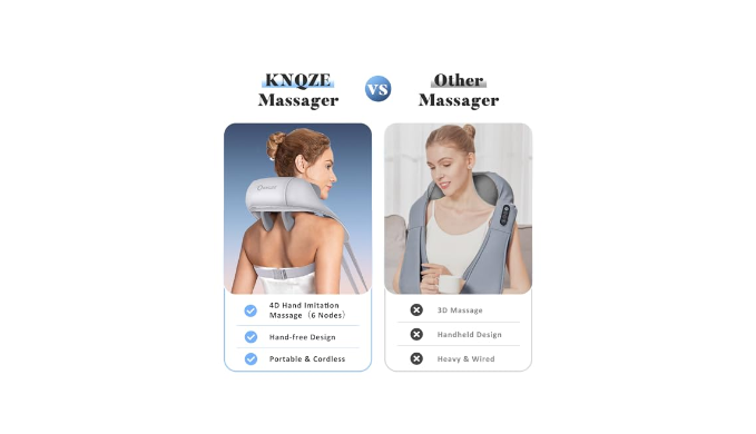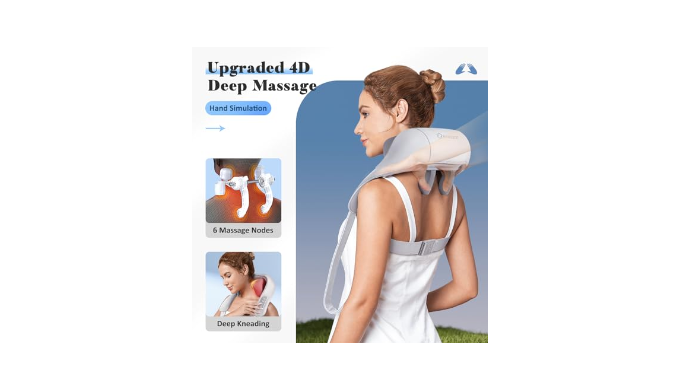 4D Deep Neck Massage: KNQZE neck massager is upgraded with 4D massage heads to simulate hand massage, allowing for real deep tissue massage. 4D massage nodes target larger areas, including the neck, trapezius, and shoulders, covering important acupoints to relieve soreness.