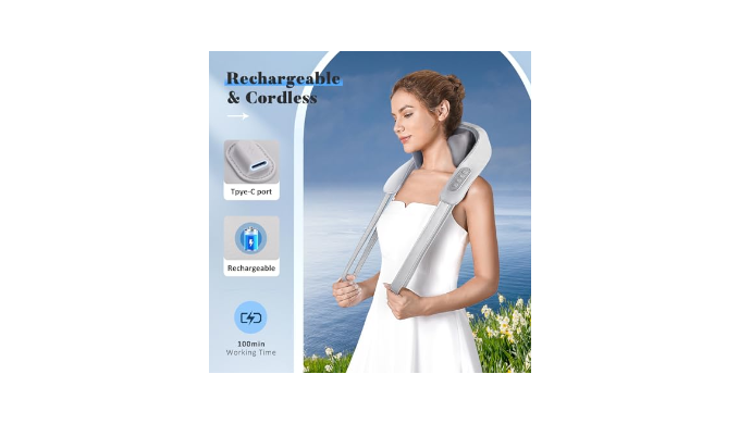 Cordless & Rechargeable Convenience: Powered by a long-lasting 2200mAh battery, the cordless neck massager offers about 100 min massage on a single charge. Simply charge it using the included USB Type-C cable, and enjoy hours of cord-free relaxation on the go or at home.