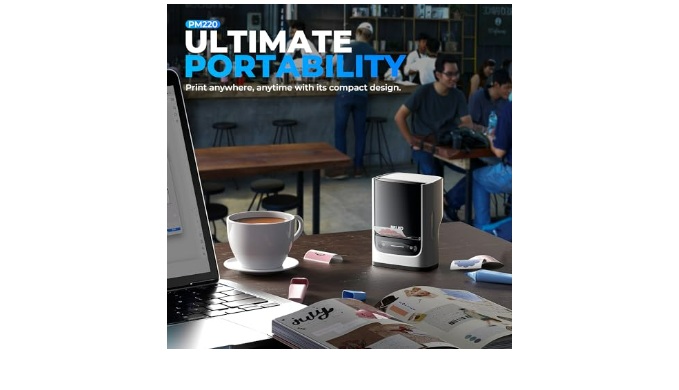 【Portable】PM220 label maker machine with tape compatible with smartphone & PC. Easily connect to your smartphone in just 5 seconds via 4.0 for fast and convenient printing, label maker achieves convenient, smooth & fasts printing. Mini compact design, you can bring this portable label maker machine with tape to anywhere.(Note: charging adapter not included, not suitable for fast charging adapter.)