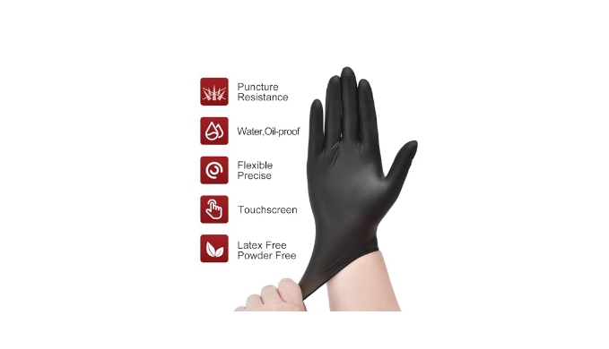 【NITRILE GLOVES FOR SUPERIOR PROTECTION】 The 4-mil thickness black disposable gloves are made of highly elastic nitrile material with enhanced puncture resistance, easy to stretch and not easily damaged, providing excellent protection against oil, dust and gasoline.Whether it is used for general household use or light work tasks, it can serve as a reliable barrier to protect your hands.