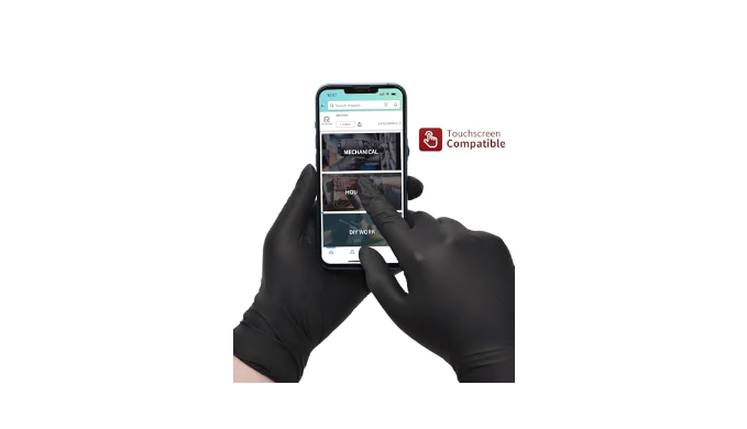 【TEXURE PRESSURE & TOUCHSCREEN】 Textured palms and fingertips provide improved grip, particularly in wet or oily conditions and touchscreen compatibility allows you to use mobile and tablet displays without removing the rubber disposable gloves.