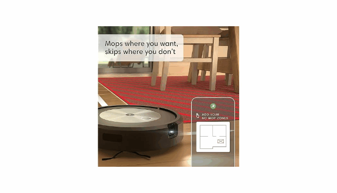 - GOES WHERE YOU WANT, SKIPS WHERE YOU DON’T. Use the iRobot Home App to create No Mop Zones and when the mop bin is in use, the Roomba Combo j5 plus will avoid mopping your carpets keeping them dry.