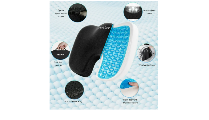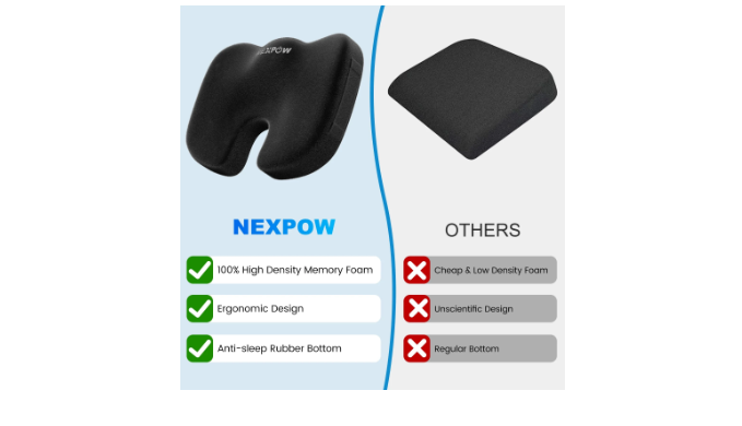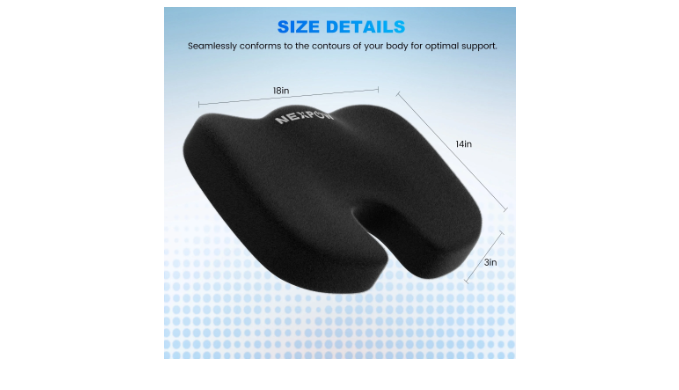 If you spend +8 hours a day in a seated position, NEXPOW Memory Foam Seat Cushion is just right for you. It provides additional support you need to maintain good posture and the natural curve of the spine. By evenly distributing weight of the body, it offloading pressure on the spinal discs. The ergonomic design helps to increase blood flow, prevents pain in the lower back, helps with muscle fatigue, leg tightness, hamstring. It allows you to sit upright naturally without pain.the butt support pillow comes with a removable and breathable black mesh cover, that provides great air circulation and allows you to sit without feeling hot or sweaty. The non-slip rubber base of the pad securely keeps it in place. The cushion insert is made from Slow Rebound Memory Foam that conforms to your individual shape and helps to avoid pressure. The handle is attached to the side of the pillow, making it easy to take it with you.
