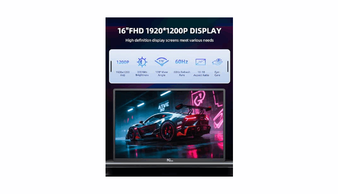 【Ultra-Clear 1200P Display with Vivid Colors】Equipped with a 16\" Full HD 1920×1200 IPS screen, this monitor offers sharp visuals, 100% sRGB color gamut, and 300 nits brightness for true-to-life colors and enhanced visual clarity in any lighting.