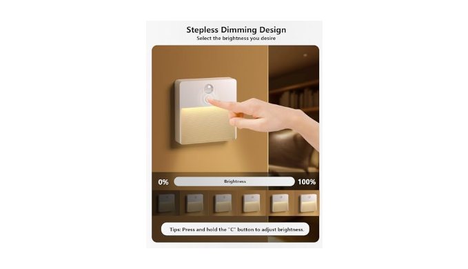 Stepless Dimming & Eye-Friendly Led Night Light: Adjust brightness effortlessly with one-touch control—perfect for midnight walks or reading. Eliminates harsh main lights, offering a gentle warm white glow (20 lumens) for safe, eye-friendly movement. Ideal as a nightlight or small-space supplement, reducing eye strain with its soft light. Comfort meets convenience, day or night.