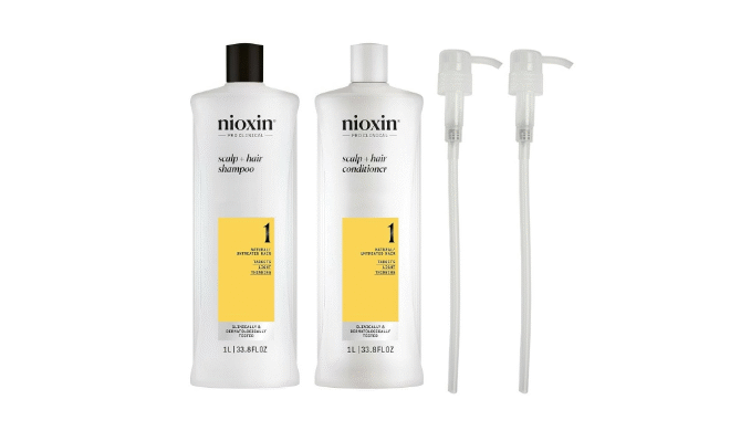 Nioxin Cleanser and Scalp Therapy Conditioner Liter Duo Pump (System #1 Liter Duo with 2 Luxury Pumps)