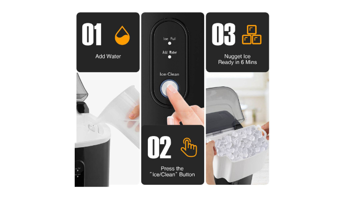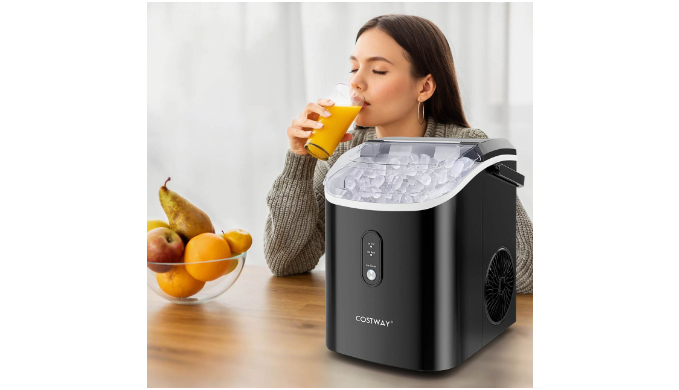 The Nugget Countertop Ice Maker is the perfect solution for those who love the taste of soft, chewable nugget ice. With its 0.3-gallon water tank, you can enjoy up to 1.8 pounds of ice at a time. The self-cleaning function ensures your ice is always fresh, while the removable top cover makes it easy to clean. The one-button operation and low noise level make it a breeze to use, and the carrying handle allows you to easily transport it wherever you need it. Plus, the included ice scoop and holder make it easy to serve and store your ice. Enjoy soft, chewable nugget ice on demand—order the Nugget Countertop Ice Maker now for convenience, freshness, and easy use!