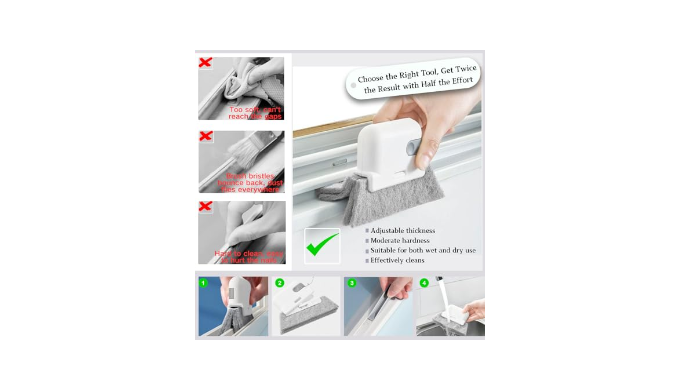 It\'s Used In: This magic window cleaning brush is perfect for cleaning window tracks, window grooves,shower door tracks, blinds, car vents, Keyboard, and all those hard-to-reach corners and hidden gap. The integrated scraper makes cleaning even easier