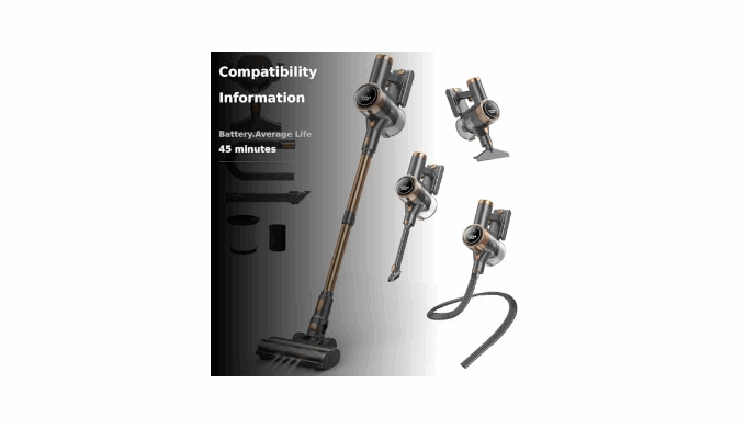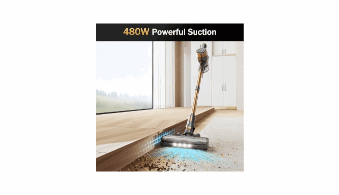 [45min Long Battery Life & Powerful Suction] Equipped with a 2200mAh detachable battery, NuYupo DHC100 cordless vacuum cleaner delivers up to 45 minutes of runtime (in Eco mode). The 480W brushless motor provides powerful suction for easily removing dust, debris, and pet hair from carpets hardwood floors, and tiles.