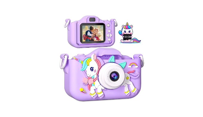 Great gifts and toys - Great birthday, Christmas and holiday gifts for boys and girls aged 3-12. What you will get: 1* kids camera, 1* USB charging cable, 1* cartoon protective case, 1* 32GB memory card, 1* lanyard, 1* user manual. If you need any help with our products, please consult us in time, we will provide you with suitable solutions.