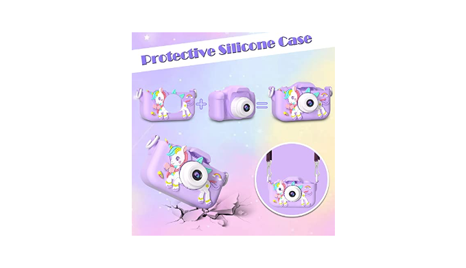 New Design - Kids camera cute silicone soft case can exercise children\'s grasping ability and effectively prevent children from bumping or falling during use. A lanyard of the same color is included to free children\'s hands, allowing children to enjoy the fun of photography while playing freely and happily, and at the same time, it can also prevent the camera from being lost.