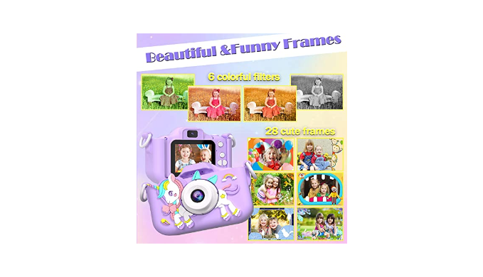 Simple and easy to use - Toddler camera focuses on retro pixels, up and down buttons to switch filters and photo frames or zoom, left button to timed shooting, right button to switch selfie mode, a variety of modes to choose from to meet the shooting needs of young photographers. Camera for kids 28 types of photo frames and 6 types of filters in the system, which can record beautiful moments with family, take various funny and interesting photos, and give kids more interactive fun.
