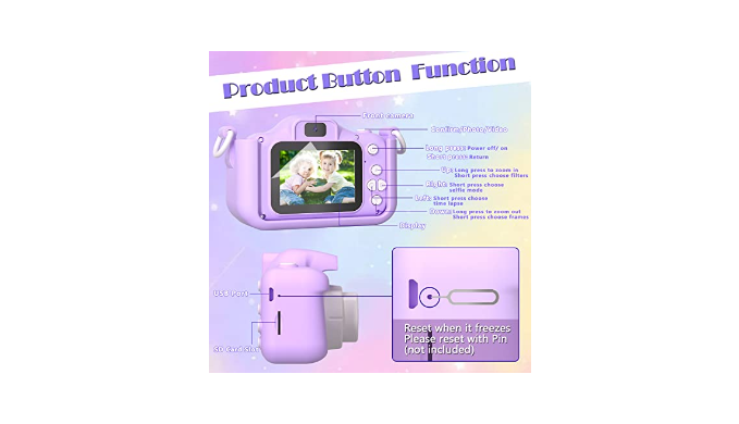 USB charging and large memory card - Use the USB data cable to charge the kids digital camera, and it can work for about 3 hours when fully charged. Kids can capture all kinds of wonderful moments as they like, and don\'t need to worry about memory problems, because we include a 32GB memory card that can store thousands of photos!
