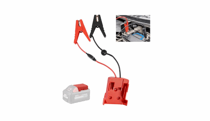 Compatible Mil.waukee M18 Batteries: This M18 battery jumper cable is compatible with Mil.waukee 18V batteries, specifically models: 4811-1820/4811-1865/4811-1850/4811-1862. When connected to a battery, this car jumper cables can start most motorcycles, cars, and SUVs. (Note: This package contains only one cable with an adapter, switch and 30A fuse. It does not include a Mil.waukee battery.)