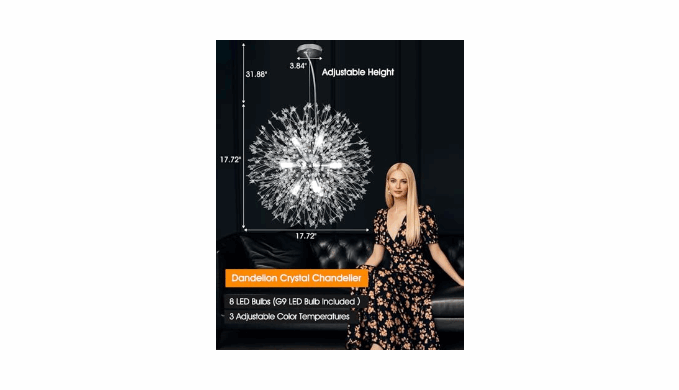 Elevate Your Space: Transform inefficient and monotonous lighting atmosphere with our adjustable height crystal chandelier, color temperature themes to suit dining room, living, bedrooms, kitchens, offices, and more. Dreamy, modern, and elegant, with a dandelion-like charm to upgrade the decor of homes, hotels, cafes, and other commercial spaces