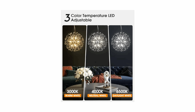 Elevate Your Space: Transform inefficient and monotonous lighting atmosphere with our adjustable height crystal chandelier, color temperature themes to suit dining room, living, bedrooms, kitchens, offices, and more. Dreamy, modern, and elegant, with a dandelion-like charm to upgrade the decor of homes, hotels, cafes, and other commercial spaces