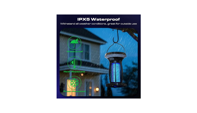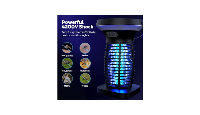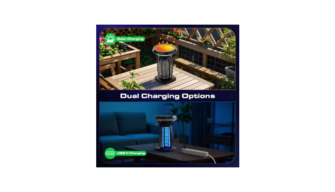 Dual Charging Options: Solar & USB: This solar powered mosquito zapper comes with a monocrystalline solar panel and a built-in large rechargeable battery that charges via direct sunlight for eco-friendly, energy-efficient use. Alternatively, you can charge it quickly via USB using the included 4ft USB C charging cable in just 3-4 hours, this portable bug zapper indoor cordless offers convenience for both indoor and outdoor use, whether you\'re at home, camping, or relaxing in your backyard