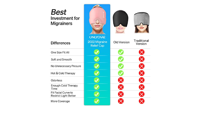 Great Investment for Migrainers - When migraine came, have you ever found yourself wanting to close eyes and squeeze your head, or staying in a calm and relaxed space for relief the pain? This migraine headache relief hat applies moderate pressure to your head, keeps cool for a period and creates a dark & lightproof environment, which will alleviate your pressure faster than medicine.