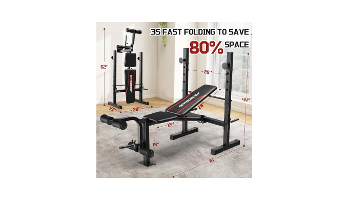 【Folded to Save 80% Space】OPPSDECOR foldable workout bench is easy to carry and store. Simply adjust the lock to quickly fold, and put it in the corner or under the bed after you finish workout.