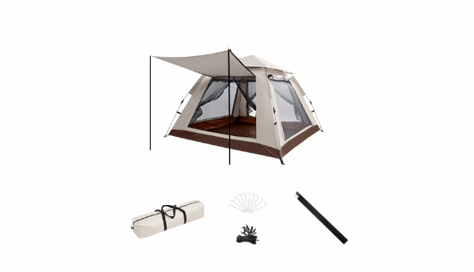 This tent is designed for quick opening. It doesn’t take a long time to build. It is very time-saving and labor-saving. Besides, it is large enough to accommodate a family. Take it with you and your family to enjoy the weekend.