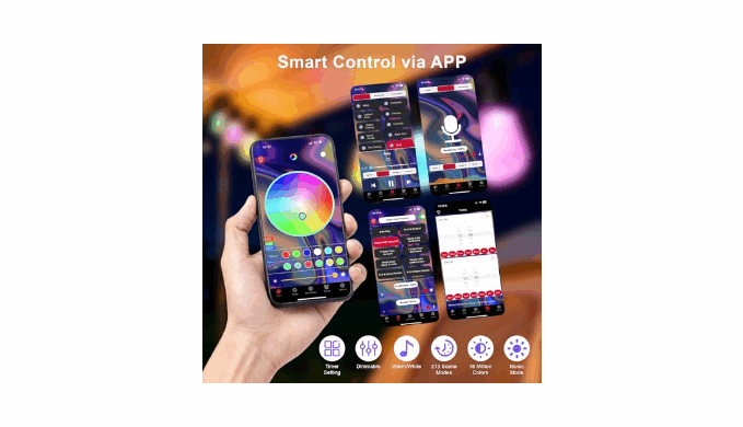 [Smart APP Control & Custom Scheduling]Easily control your RGB string lights using the intuitive App — adjust brightness, switch colors, select scenes, or set timers for automatic on/off. Manage multiple strings together for synchronized lighting, giving you complete control over your outdoor lights for patio and garden House lights outdoor.