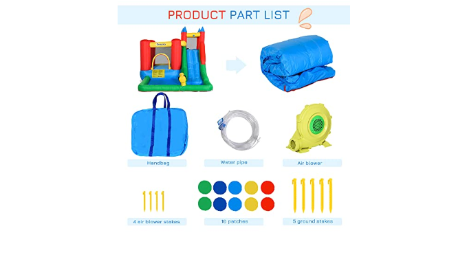 Strong Materials: Thick high-density oxford fabric offers material strength and weather protection. With ground stakes, we make this inflatable water slide secure from the wind.