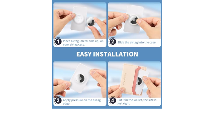 【Simple Installation】 Tuck your Airtag into the Airtag wallet in just 10 seconds, then slip the wallet into your bag or pocket to ensure that your Airtag device is not accidentally dropped or lost!