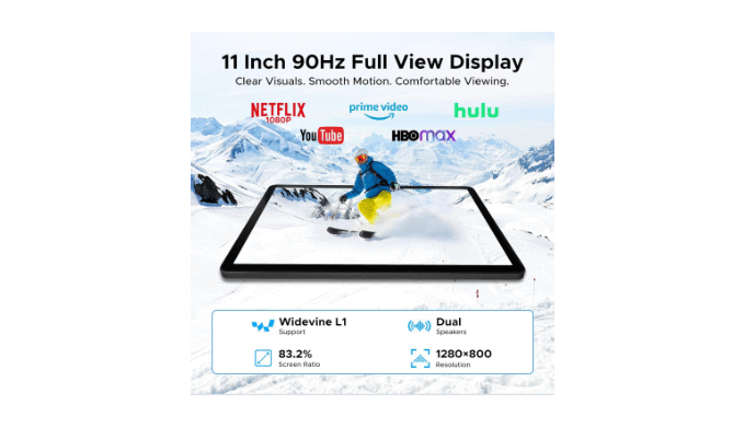 【120Hz + Widevine L1 Certified】Aorlym P11 large tablet features an 11-inch IPS HD display that delivers crisp, detailed visuals. Paired with a 120Hz refresh rate, it offers a smooth, responsive, and immersive experience.Aorlym P11 tablet with keyboard is your portable HD cinema. With Widevine L1 certification, it unlocks true 1080P HD content on supported mainstream streaming platforms, saying goodbye to blurry visuals.